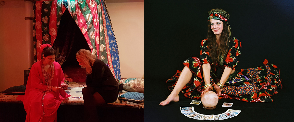 Met eigen tent of eigen tafel en decoratie in de stijl van uw feest: Zigeuner waarzegster, arabische waarzegster en tarot lezer, hindi waarzegster, Cubaanse waarzegster en tarot lezer of zelfs een afrikaanse medicijnman hebben wij in het bestand!